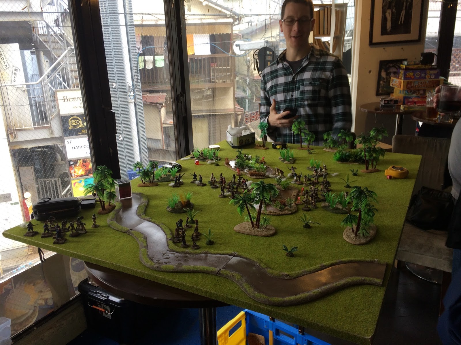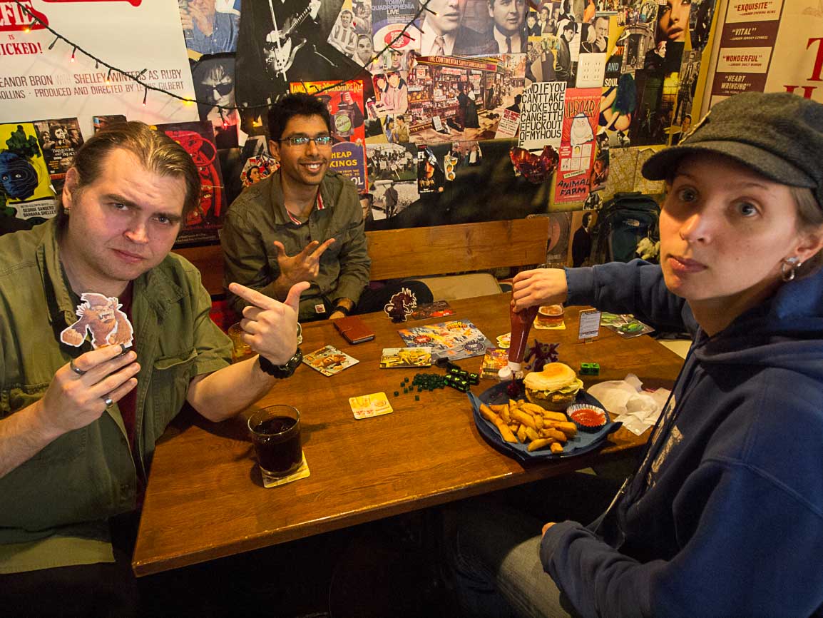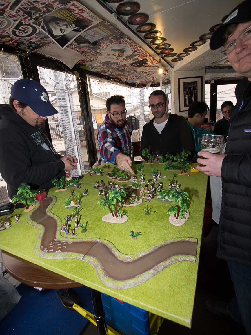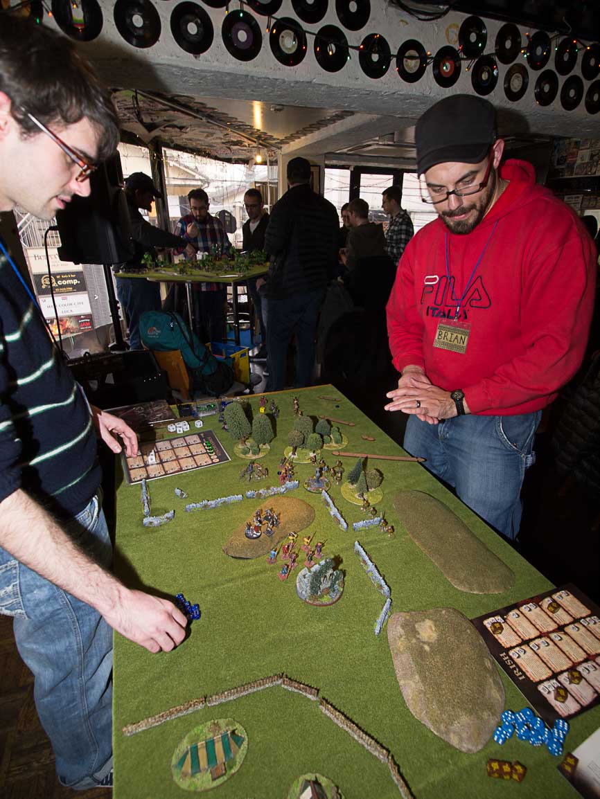 The layout of the pub was different this time, and it was great. The miniature players could stand and walk around the tables, and the board gamers had more room to sit big groups around the tables.