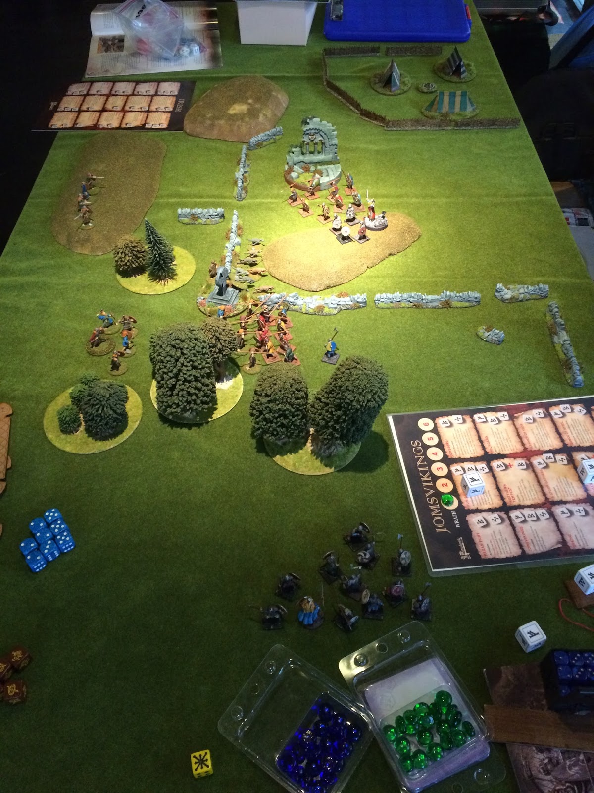 I finally got to play my Irish Saga warband that I painted over the winter holiday. Saga is a great game set in the Dark Ages for 28mm toy soldiers.